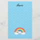 Cute unicorn gift ideas. Create your own custom Personalised just add name,monogram, or initials or saying on your cute cartoon rainbow unicorn on a rainbow with clouds with blue polka dots pattern background and blue heart. Cute unicorn gift ideas for kids. Ideal for birthday parties and holidays. If you hit the customise it button you can change the colour and type of font.
