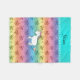 Personalised name unicorn rainbow diamonds bows fleece blanket