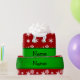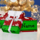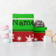 Create your own custom Personalised with just add your name (family name),monogram, greeting or initials or saying cute cartoon white unicorn with with red snowflakes Christmas pattern background and green black stripe. Cute unicorn Christmas gift ideas.