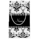 Trendy, fancy, chic and pretty white black damask floral flowers pattern background black diamonds stripe (faux diamonds, not real) custom personalised with your name gifts or monogram gifts or your initials Ideal for weddings, birthdays, and much more featuring an elegant and traditional fancy lettering. Damask gift ideas for women.