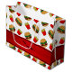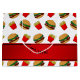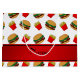 Cute hamburger and fries gift ideas. Hamburger with cheese, lettuce, tomatoes and yellow fries in a red basket with white dots pattern with white background, red black stripe personalised with your name gifts or monogram gifts or your initials. The best gifts for chefs, cooks and burger lovers.