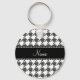 Personalised name white houndstooth pattern key ring