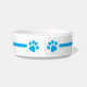 This unique custom pet dog or cat bowl features their name in modern all-caps style with cute paw print.