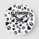 Personalised Name with Paw Print Design Round Clock