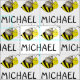 Simply personalise with your name! Fabric features an original marker illustration of a black-and-yellow bumblebee.