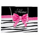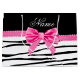 Modern, trendy, chic and stylish zebra striped gift ideas. Personalised custom name white black zebra stripes pattern (wild animal print) with a pink diamonds bow (not real diamonds) personalised with your name gifts or monogram gifts or your initials.