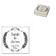 Round custom wedding rubber stamp. Personalised with newlywed couple's names and their wedding date. Great personalised wedding stamp to use for correspondence, diy wedding invitations, save the dates, thank you cards, favours and other wedding related items that can be stamped.