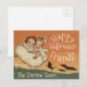 Personalised message from your family to anyone you choose. Postcard Horizontal Template. Adorable Vintage retro clipart, two cute kids on a cloud wishing you a Happy Halloween! Witch and bats chasing!