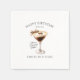 An espresso martini shows that the guest of honour is "a tini bit older." Sophisticated neutral colour palette. Martini with a bow and espresso beans.