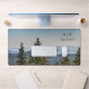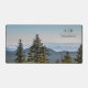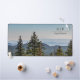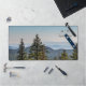 Personalised Blue and green Nature Mountain Forest Desk Mat with green forest trees and blue sky. Perfect for mountain lovers and forest lovers alike, will make a beautiful personalised desk mat for your home office.
