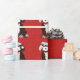 Cute Personalised Black and White Cartoon Bernedoodle Puppy wearing custom Santa hat, red bow with jingle bells, tangled in christmas lights. Festive holiday red snowy background. Add your bernedoodle's name to this adorable holiday christmas wrapping paper!