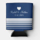 Personalised nautical anchor wedding can coolers with cute heart. Navy blue colour. Vintage design monogrammed with name initial letters of bride and groom / newly weds couple. Weathered love symbol with date of marriage and name monogram of bride and groom. Make your own cosy wedding favour / souvenir for guests at your party. Romantic theme beverage holder design. Perfect for alcoholic drinks like beer. Also available for bottles. Elegant script typography. Change the quantity to get the cheapest price per cooler. Maritime sailing / beach theme. Vintage Boat / ship anchor design with Just Married slogan. Monogrammed Anchors aweigh!