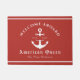 The Nautical "Welcome Aboard" boat mat design features a stylish navy blue and white coastal aesthetic, accented with a boat anchor. Personalise it with your boat's name, location city, state, and established date for a unique touch. This custom mat makes a fantastic gift for boat owners, perfect for welcoming guests aboard.