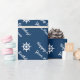 Personalised nautical ship wheel blue and white wrapping paper for Birthday or Christmas Holidays. Custom giftwrap with congratulatory message. Personalizable name with custom Happy Birthday congratulations text. Customisable navy blue background colour and elegant script text for your wishes or note. Surprise your friends, family, sailor, husband, wife, etc. Great gift wrap design for maritime theme party. Also fitting for themed graduation, anniversary, new home, new pet, beach wedding, promotions, pregnancy, new job, new boat or yacht, sailing and more.