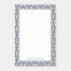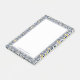 Coastal chic post-it notes feature an intricately patterned geometric border in navy blue and sunny golden yellow, inspired by traditional Spanish and Portuguese azulejo tiles. Personalise these Mediterranean-chic notes with your name, business name, monogram or choice of custom text along the bottom.