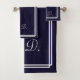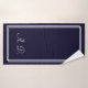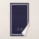 Elegant and modern personalised navy blue towel with initials. Use the Design tools to change the text and font. Great as a Birthday or Holiday gift.