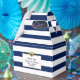 Love these personalised favour boxes for your nautical wedding, bridal shower favour gifts! Navy blue and white stripes with navy blue anchor. Gold foil glitter heart to add some touch of class. Add your text and customise it! Get matching invites and stickers! Found in 'NAUTICAL' wedding collection.