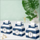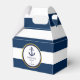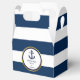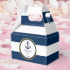 Love these personalised favour boxes for your nautical wedding favour gifts! Navy blue and white stripes with navy blue anchor and rope. Gold foil circle to add some touch of class. Add your text and customise it! Get matching invites and stickers! Found in 'NAUTICAL' wedding collection.