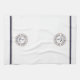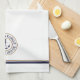 Personalised nautical anchor logo kitchen towel. White with navy blue and tan brown circle emblem with classic block text. Double navy blue and tan brown lined border.