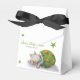 Cute neutral baby shower favour boxes with an illustration of a triceratops hatching from its egg. Great to complement your baby shower dinosaur theme. Personalise it with your own information. Illustrated and designed by Patricia Alvarez.