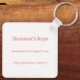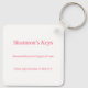 Seven sections of customisable pink text highlight this "never lose your keys" keychain.