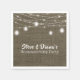 Create your own rustic burlap look, mason jar theme housewarming party paper napkins- Personalised names in modern, handwritten look lettering are printed above 'Housewarming Party' in whimsical style. Decorated at top with hanging, rustic country mason jar lights and twinkle lights. Against vintage, shabby burlap look background. Country chic housewarming party paper napkins for rustic housewarming party, country theme housewarming, mason jar theme party, outdoor housewarming party, farmhouse housewarming, etc. Visit our Zazzle.com/angela65 shop for coordinating housewarming party invitations and more rustic mason jar paper napkins and decor.