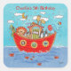 This beautiful print of a pen and watercolour illustration by Helen McCartney Designs features a group of sweet animals huddled together aboard Noah's Ark.
