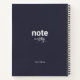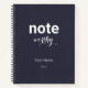 Personalised Note worthy spiral notebook. Blue grey with plain and script white text.