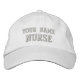 Personalise this real embroidery nurse hat with your choice of name for a great holiday gift for nurses. Ball cap has stitched name with nurse occupation slogan.