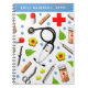 Creative nurse notebook featuring a cartoon stethoscope and nursing supplies. To personalise edit text to add nurse's name.