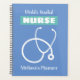 Personalised nurse planner with stethoscope design. Elegant calendar book with brush script typography and medical equipment illustration. Cute gift idea for healthcare workers, ICU nurses, doctors, carers, caretakers, assistants, rescue workers, hospital staff, emergency worker, first responders, co worker, colleague, nursing personnel, students etc. Blue or custom background colour. Handy for home, office, work and school.