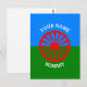 Personalised official Romany gypsy traveller flag, O styago le romengo in romani, of the Roma Gipsies with a red wagon wheel on a green and blue background. This modern flag represents the blue open sky and the green grass of the world with a wheel of travel and the roaming life of gypsies, represented by a 16 spoke red shakra. Easily personalise this with your own text, name or monogram to the name templates to create a unique custom gift for someone of proud Romany gypsy heritage or cultural roots. Or visit the CUSTOMIZED GIFTS STORE for matching products and more gypsy traveller gifts.