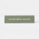 Make a statement with this personalised desk name plate featuring a modern white sans serif font on an olive green background. Customise with your name or business name for a professional and stylish touch to any workspace.