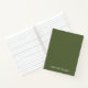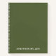This personalised notebook features a classic white typography design on a solid olive green background. The name is elegantly placed in the lower thirds of the notebook cover. The notebook is perfect for jotting down notes, keeping a journal, or as a thoughtful gift for a friend or loved one.