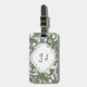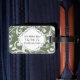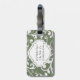 Personalised olive green and white flourish / floral luggage tag. Be sure you have all of your contact information on your luggage. Add your name on the front, and address and phone number on the back.