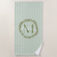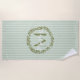 Soak up the sun in style with this Personalised Olive Wreath Monogram Beach Towel, featuring a graceful hand-drawn olive branch wreath framing your custom initial. The soft sage green striped background adds a fresh, natural touch that stands out at the beach, poolside, or spa. Made from soft, absorbent fabric, this towel is perfect for relaxing in comfort and showcasing your personal style. It also makes a thoughtful gift for weddings, birthdays, or summer getaways.