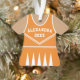 Celebrate your cheerleader's spirit with this personalised orange cheerleader uniform ornament. Perfect for commemorating a special season, team, or individual achievement. Customise it with a name and year to create a unique keepsake.