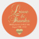 Personalised ORANGE Gold LOVE & THANKS Wedding Classic Round Sticker