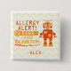 Allergy Alert: Eggs causes Malfunction. Personalise with name or other information. Orange robot design with 'no eggs' symbol. Remind others at meal times of food allergies. Great for kids with food allergies. Attach to medical bags and note 'epinephrine inside' in text. Pin to child's clothing, coat or backpack to alert others of food allergy. Designs by Designs by Lil Allergy Advocates www.lilallergyadvocates.com