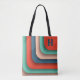 Personalise this orange, teal and blue bag with your initial to show your individual sense of style.