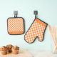 Personalised Orange White Tartan Plaid Oven Mitt & Pot Holder Set