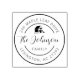 Add a personal touch to your mail with this elegant rustic round rubber stamp, featuring a modern script font and classic circular layout. Customised with your family name and home address, this stamp is perfect for envelopes, invitations, thank-you cards, and everyday correspondence. The timeless design, accented with a minimalist little cute house motif, makes it both stylish and practical. A thoughtful gift for new homeowners, families, or anyone who loves personalised stationery.