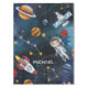 Featuring illustrations of outer space activities and icons as stars, a space rocket, an astronaut, moon, satellite, and other planet system elements Add a name by clicking on the "Personalise" link above