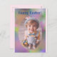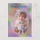 The design features a personalised photo in an elegant oval shape along with customisable blue typography that reads "Happy Easter" on a colourful rainbow background!