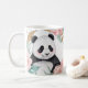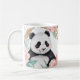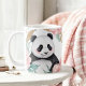 Create a unique and personalised mug with this charming design featuring an adorable panda surrounded by pink flowers and green leaves with golden accents. The centre of the floral frame is left blank, allowing you to add a name, making it perfect for customised gifts or stationery. This delightful illustration combines the cute appeal of the panda with elegant floral elements, adding a personal touch to your daily routine.