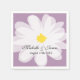 Personalised paper wedding napkins with daisy flower. Chic paper napkins with purple backrgound colour and floral design. Nature design with stylish script calligraphy typography. Make your own unique classy party napkins with name of bride and groom plus date of marriage. Customisable background colour and monogram. Beautiful design for romantic weddings, fancy bridal party, country chic reception dinner party and outdoor garden BBQ's in the summer. Also nice for refined engagement or sophisticated anniversary party if you change the wording. Dinner and Beverage cocktail napkins.