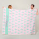 Cosy up in holiday style with this personalised pastel Christmas throw blanket. Featuring a soft pink background decorated with aqua Christmas trees topped with bright pink stars, this festive fleece blanket adds a whimsical, modern twist to traditional Christmas décor. Personalise it with your family name or custom text for a one-of-a-kind holiday keepsake.