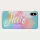 Pretty pastel paint splotches in pink, peach, lilac, aqua, gold, blue and white are scattered across this abstract stylish design that features "Hello" text in modern brush script typography. Personalise with your name or other desired text for a case that is uniquely you.
