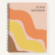 Personalised pastel retro stripe spiral notebook with earthy tone 70s and 80s golden brown orange wavy lines. This note has customisable name you can change it with your name. Perfect gift for student, teacher etc.