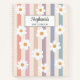 This cute sketchbook features white daisies on a striped background in pastel colours. Easily customisable with your name. Great for Back to School or as a gift.